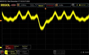 Al tratarse de un panel OLED, el brillo se controla mediante modulación por ancho de pulsos. Según el fabricante, el iQOO 15 utiliza atenuación PWM de alta frecuencia a 2.160 Hz para reducir posibles efectos negativos como el parpadeo visible. Nuestras mediciones con el software Rigol indican una frecuencia base de unos 560 Hz.