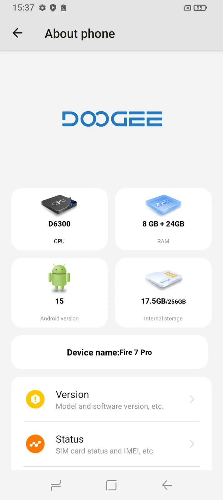 Software - Android 15 con personalización de Doogee