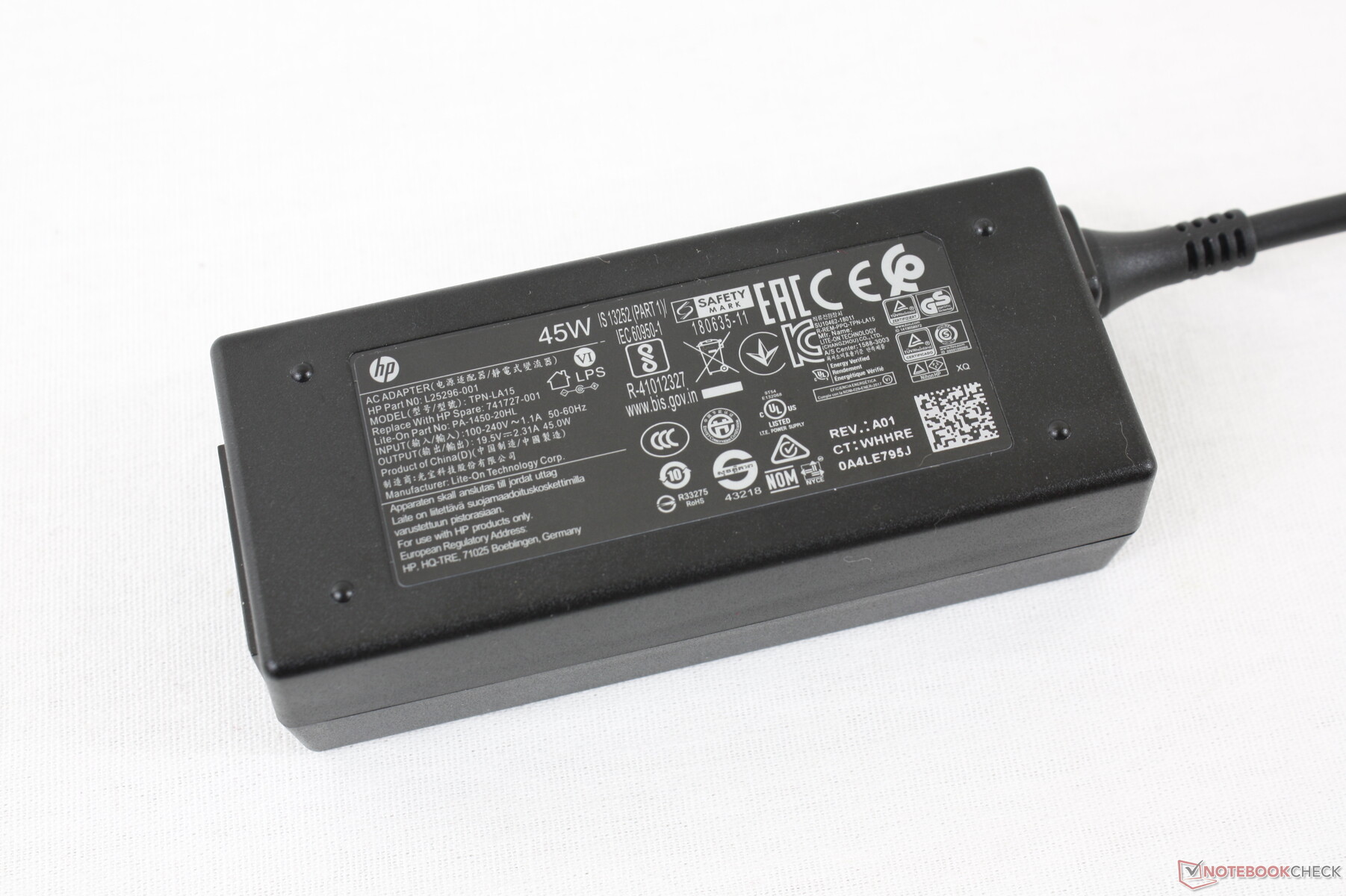 Un máximo temporal de 46 W puede ser registrado desde el pequeño (~10 x 4 x 2,7 cm) adaptador de CA de 45 W.