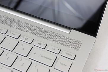 Las opciones de puerto son idénticas a las del Envy 15 más grande, pero con un puerto Thunderbolt 4 en lugar de dos Thunderbolt 3. Aun así, esto no es un problema, ya que sigue habiendo más puertos que en la mayoría de portátiles de este tamaño. Todos los puertos están cerca de las esquinas traseras del chasis para facilitar la gestión de los cables.