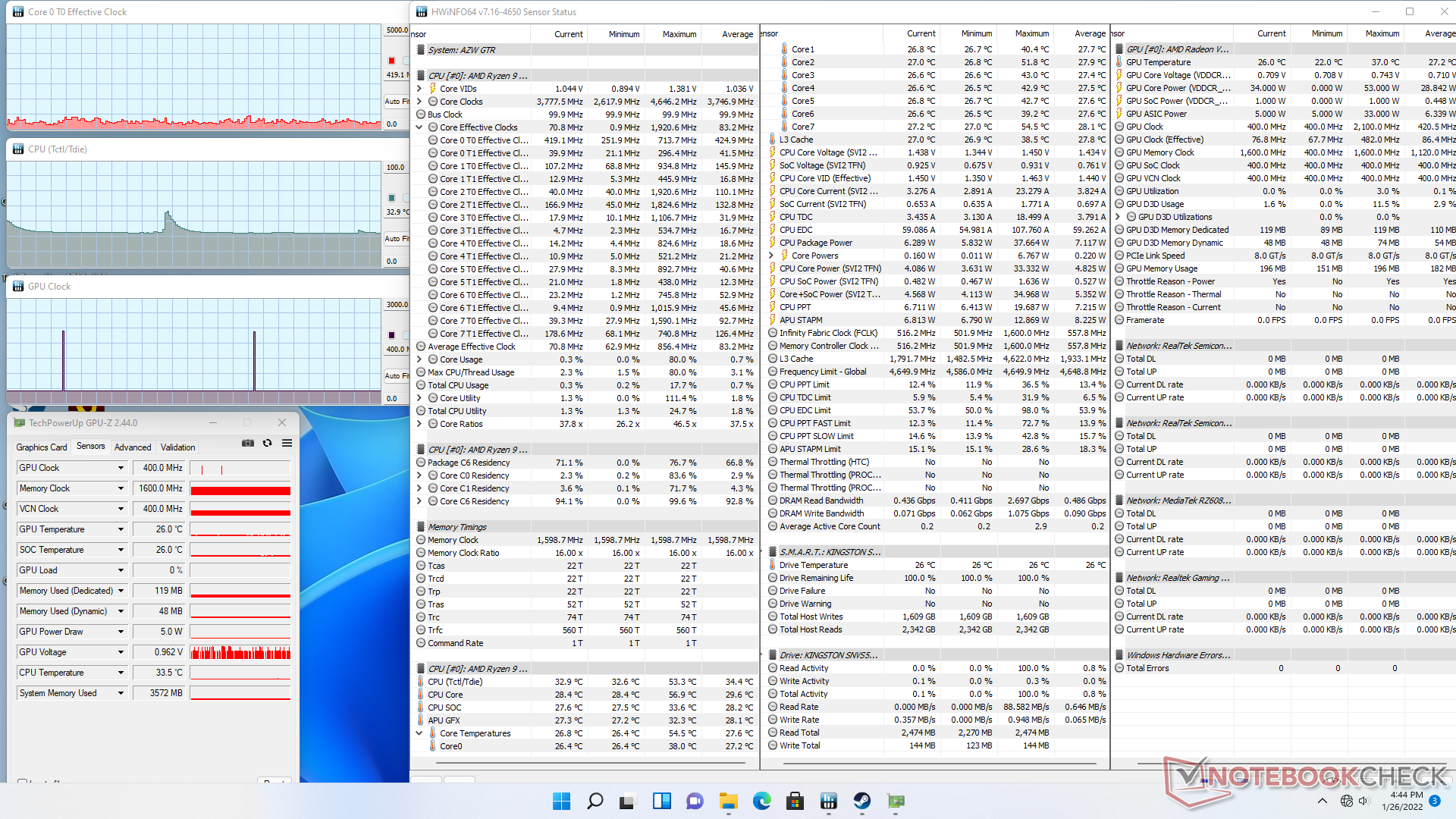 | Reloj de la CPU (GHz) | Reloj de la GPU (MHz) | Temperatura media de la CPU Tctl/Tdie (°C) | |