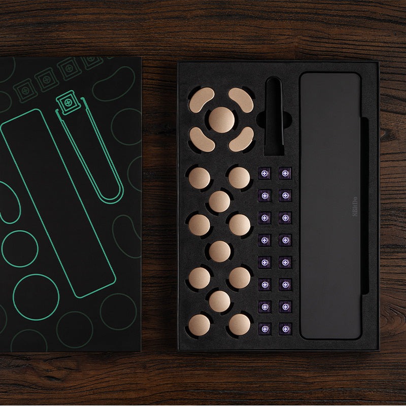El kit de actualización viene con 16 interruptores lineales Kailh Purple Glede, que son silenciosos y tienen una distancia de precarrera más corta de 0,8 mm. 8BitDo también incluye keycaps dorados para sustituir a los negros y rojos que vienen con el mando. Los compradores también encontrarán en la caja un extractor de teclas y un reposamuñecas.