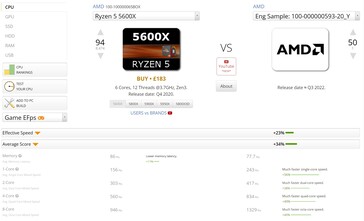 Como era de esperar, el chip Raphael sólo muestra ganancias menores sobre el Intel Core i9-12900K en las pruebas multinúcleo, ya que este último consta de 16 núcleos (8P + 8E) y 24 hilos, pero la diferencia en un solo núcleo se registra como una impresionante ventaja de +22% para el Ryzen 5 7600X. APISAK también compara esta nueva muestra con su predecesor, el Ryzen 5 5600X, donde muestra unas diferencias fenomenales https://cpu.userbenchmark.com/Compare/AMD-Ryzen-5-5600X-vs-AMD-Eng-Sample--100-000000593-20-Y/4084vsm1898605. La ganancia de 2 núcleos se sitúa en un +38%, con un +40% para las pruebas de carga de trabajo de 8 núcleos y un +49% para las de 4 núcleos. Sin embargo, la ganancia de rendimiento en un solo núcleo para el chip Zen 4 es de un asombroso +56%, lo que indica una vez más que la familia Raptor Lake de Intel tendrá una gran batalla en sus manos cuando tenga que enfrentarse enfrentarse a contra la serie Raphael de AMD