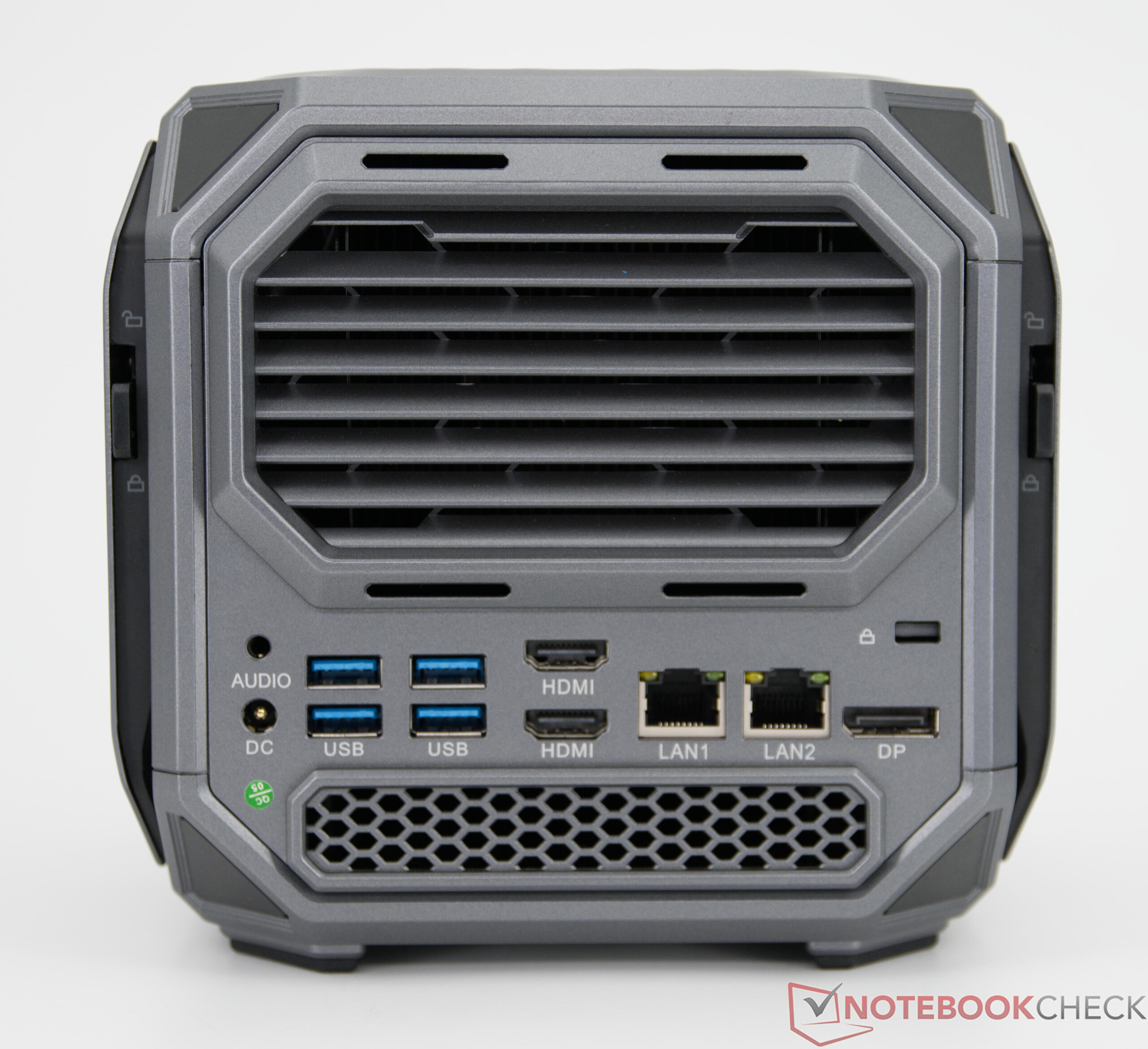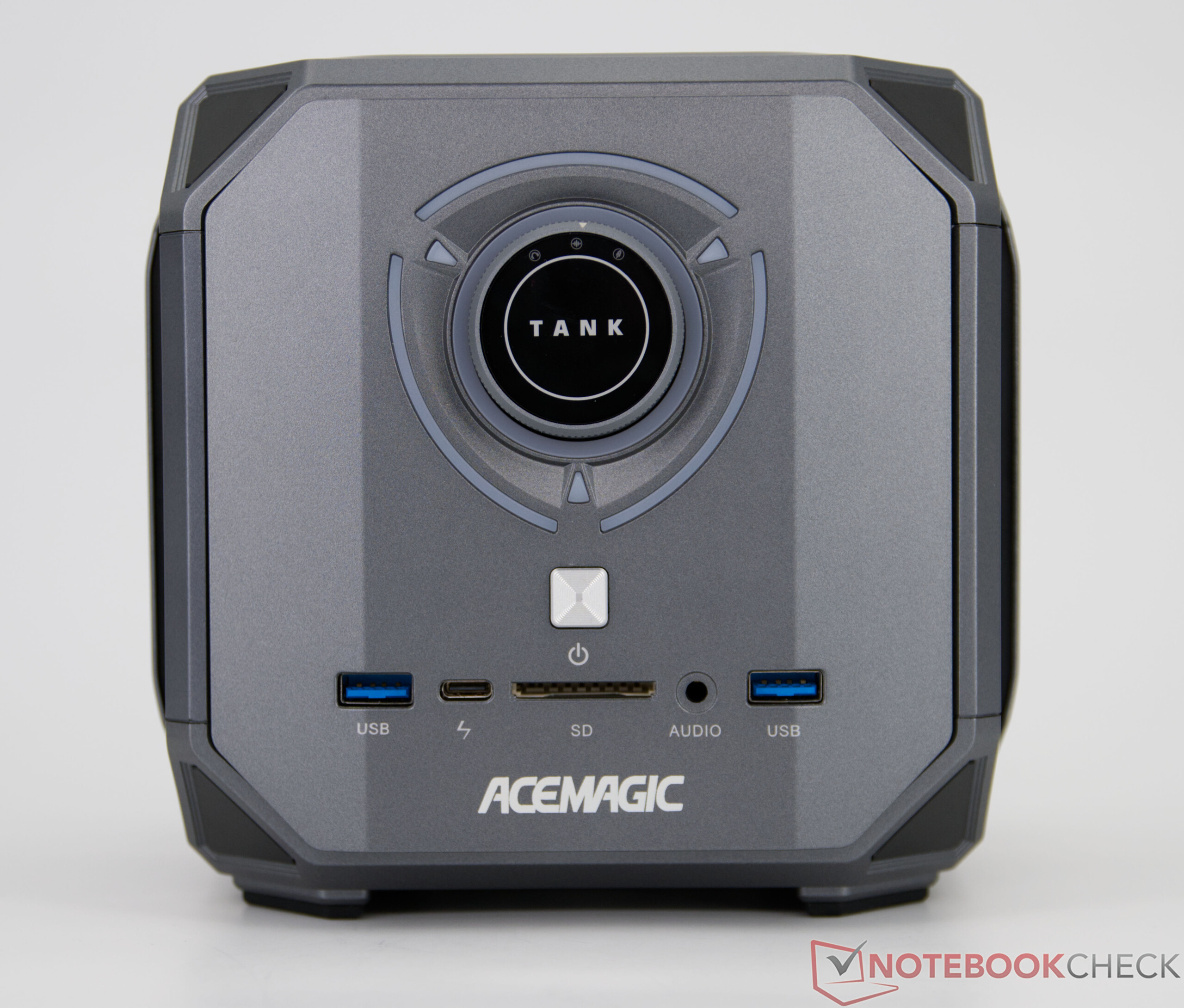 Al igual que el modelo anterior, el Acemagic Tank 03, el Acemagic M1A Pro+ utiliza el mismo diseño visual con algunos cambios bajo la cubierta lateral. También se ha mantenido el elemento de control característico de la parte frontal: el mando giratorio integrado permite cambiar cómodamente entre varios modos de potencia (70 vatios, 100 vatios y 140 vatios). Los materiales y la fabricación son similares a los del Tank 03, al que nos referimos en este punto.