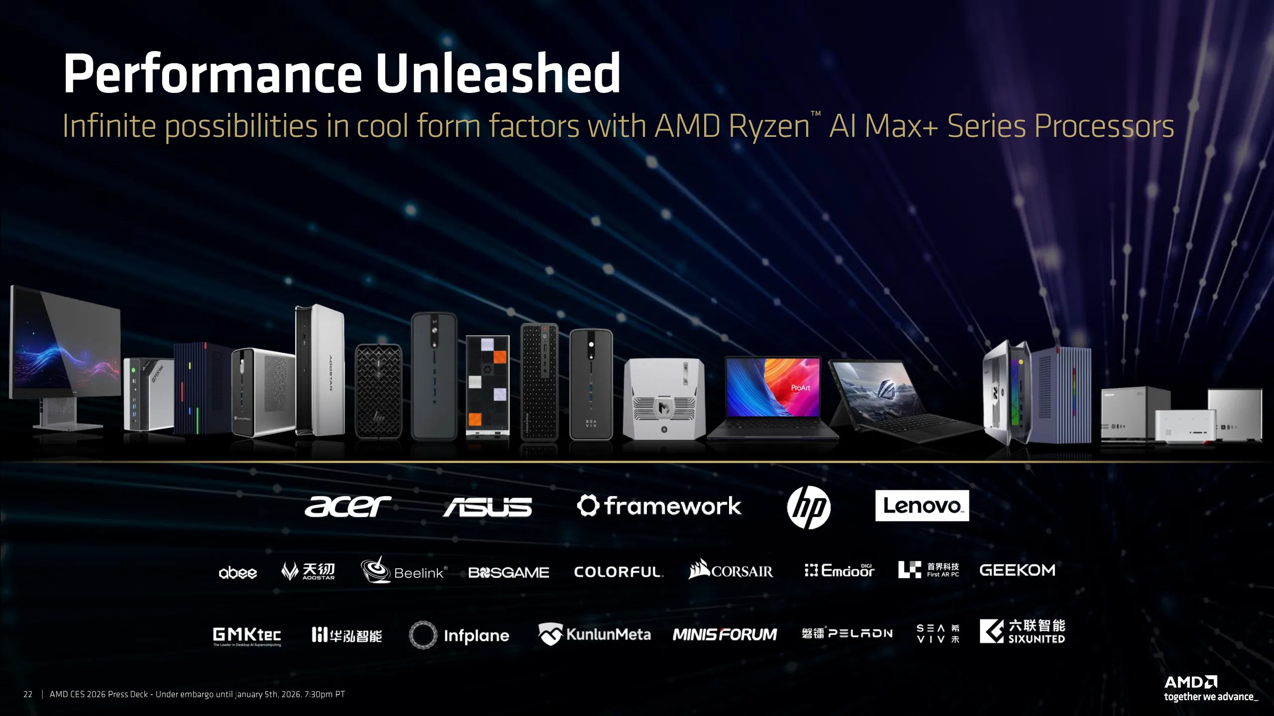 Los nuevos diseños de portátiles impulsados por las APU Ryzen AI Max+ estarán disponibles en Acer, Asus, Framework, HP y Lenovo. También hemos visto dispositivos portátiles para juegos de la talla del GPD Win 5 impulsado por Strix Halo que ejecuta tanto Windows 11 como SteamOS.