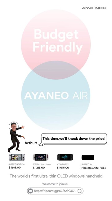 En una entrada del blog y en Twitter, el equipo de AYA NEO explica que la AYA NEO AIR pesará menos que la Nintendo Switch OLED, que inclina la balanza a 420 g. Además, la empresa afirma que la pantalla de la AIR cubrirá el 109% del espacio de color NTSC, una cobertura mucho más amplia que la que ofrecen las actuales consolas AYA NEO. Al parecer, la AYA NEO AIR también será más barata que la AYA NEO 2021, aunque esto solo significa que costará menos de 1.015 dólares.