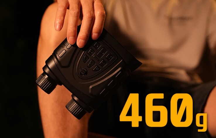 El Accuro N1 parece un par de prismáticos, pero en realidad es una cámara digital. En la parte frontal, incorpora un objetivo y una linterna con un LED infrarrojo. El fabricante anuncia principalmente el dispositivo afirmando que puede capturar fotos y vídeos brillantes con poco ruido de imagen, incluso con muy poca luz, gracias a un sensor especialmente sensible a la luz y a un objetivo f/1,0.