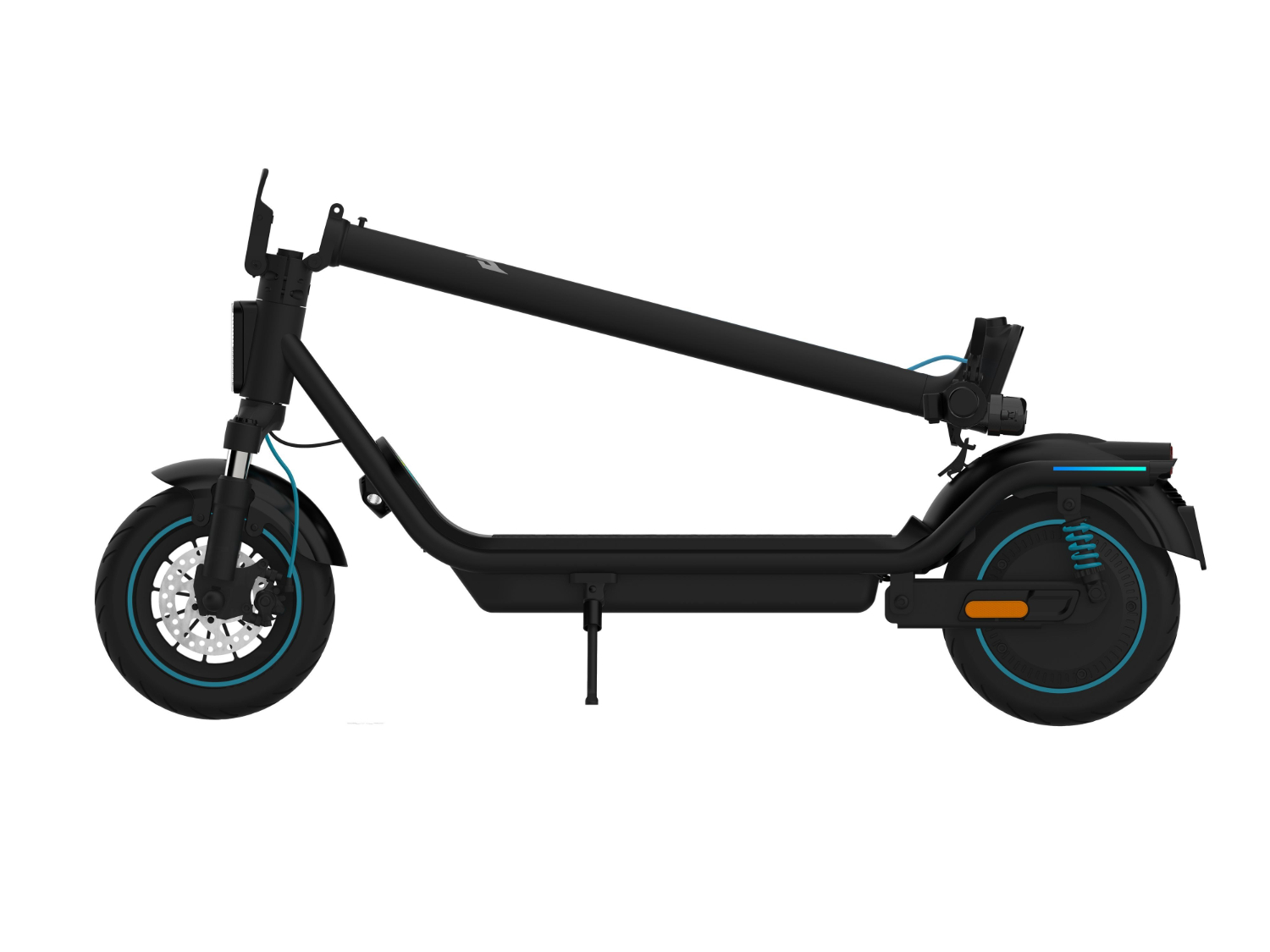 La Predator ES Storm Pro tiene suspensión delantera de horquilla y un amortiguador de doble muelle en la parte trasera. Está equipado con neumáticos sin cámara de 10 pulgadas delante y detrás, y también dispone de un freno de disco trasero con sistema electrónico antibloqueo de frenos (EABS).