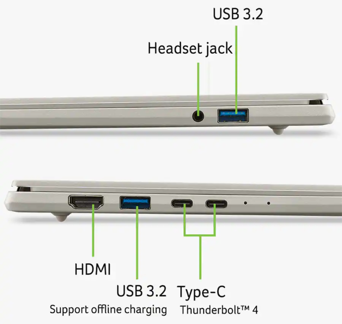 Además, Acer empareja el Core Ultra 7 355 con 32 GB de RAM y una unidad SSD de 1 TB, frente a los 16 GB de RAM y 512 GB de almacenamiento de su Core Ultra 5 322 hermano. Sin embargo, ambas variantes cuentan con pantallas OLED de 1200p idénticas, que ofrecen sólo 250 nits de brillo máximo. Asimismo, Acer incluye una batería de 70 Wh con soporte para carga de 100 W, todo ello dentro de un paquete que pesa sólo 1,36 kg.