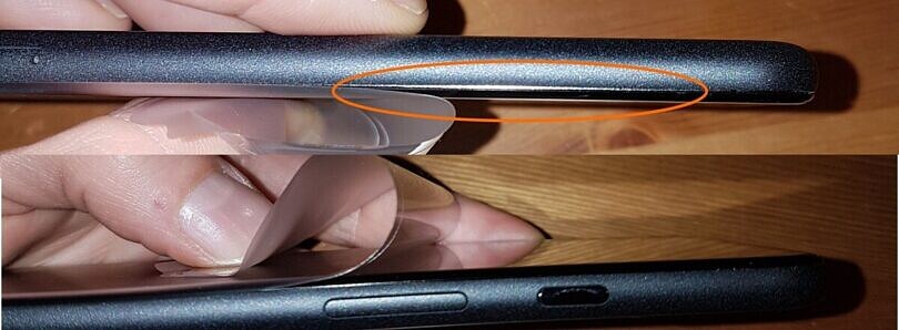 El problema parece estar afectando a los dispositivos de diferentes maneras, como lo demuestran las fotos de abajo. En algunos dispositivos, por ejemplo, hay un claro hueco entre la pantalla y la carcasa. Si bien es indudable que habrá que sustituir estos dispositivos, el problema es más sutil en otros. Anecdóticamente, el Pixel 5 que compramos tiene espacios desiguales entre la pantalla y la carcasa. Algunas áreas están al ras, pero en otras hay suficiente espacio para deslizar una uña entre ellas.