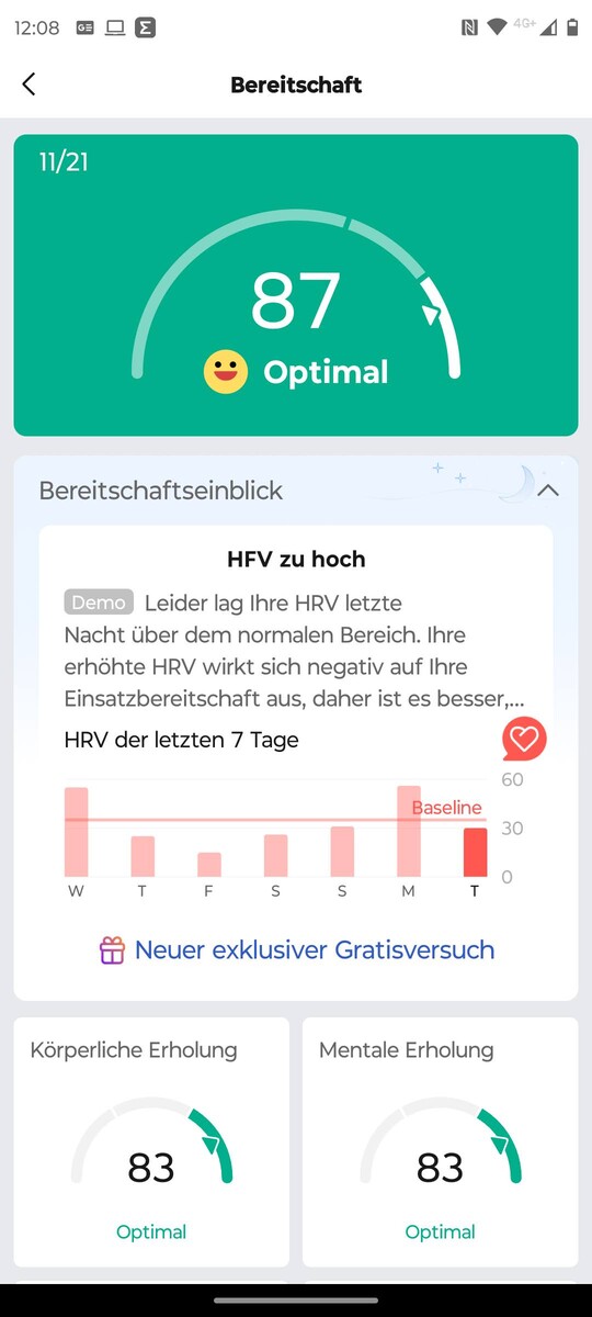 El smartwatch también cuenta con un seguimiento automático de los entrenamientos, y la app permite a los usuarios limitar el seguimiento automático a deportes específicos. Los ejercicios en interiores en la cinta de correr, la máquina de remo o la bicicleta elíptica también pueden registrarse automáticamente. Durante las pruebas, el software reconoció los entrenamientos de forma fiable, con la excepción de un trayecto en coche por el centro de la ciudad, que se clasificó erróneamente como un entrenamiento en bicicleta.