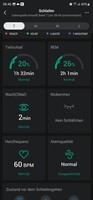 El propio rastreador de fitness muestra un resumen compacto de los datos del sueño, pero para obtener detalles más exactos sobre las fases del sueño hay que consultar la app. Por desgracia, no hay una alarma inteligente que pueda activar la alarma dentro de un marco de tiempo preestablecido en función de la fase de sueño actual. Al mismo tiempo, también echamos de menos opciones de evaluación más detalladas de las mediciones, en las que se muestren los datos del sueño junto con todos los datos de salud, como la saturación de oxígeno en sangre, a través de un eje temporal.