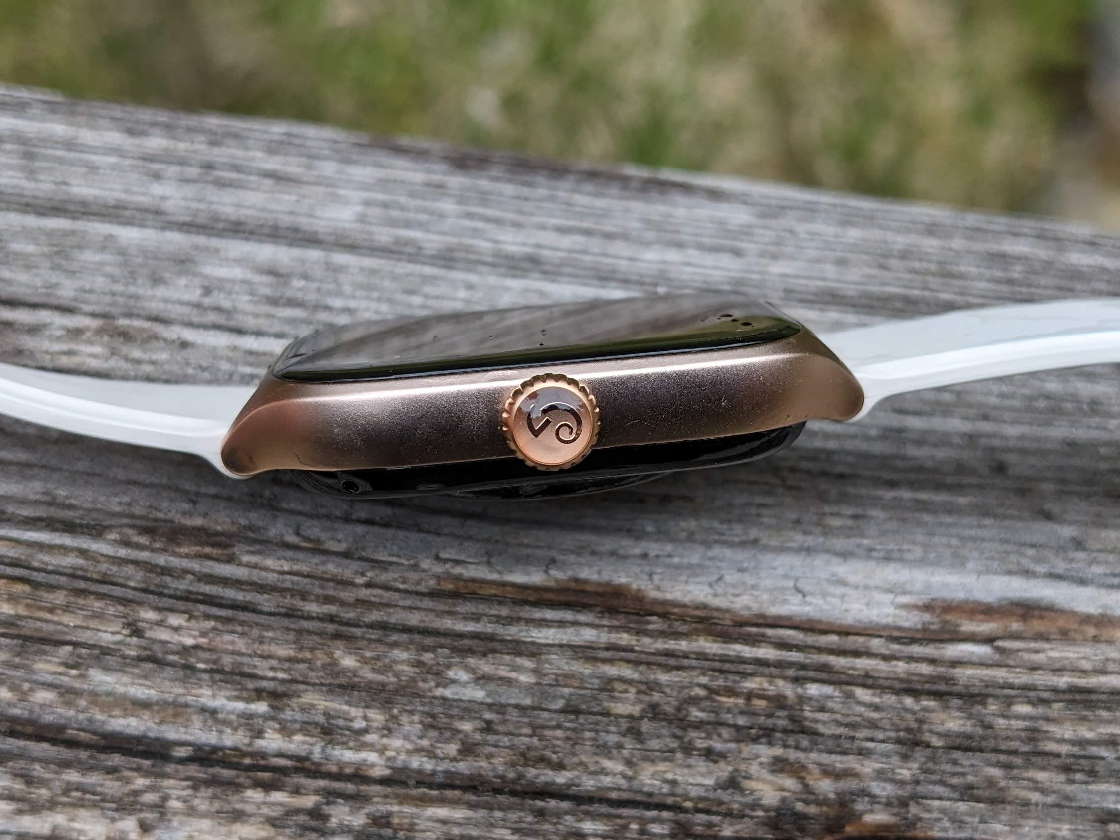 Además de la corona, la caja no tiene otros botones. Sin embargo, hay un micrófono a la izquierda y a la derecha del dispositivo. En el lado izquierdo también hay un altavoz. El reloj tiene un tacto de primera calidad y está bien fabricado. Durante las pruebas no se encontraron arañazos ni desgaste.