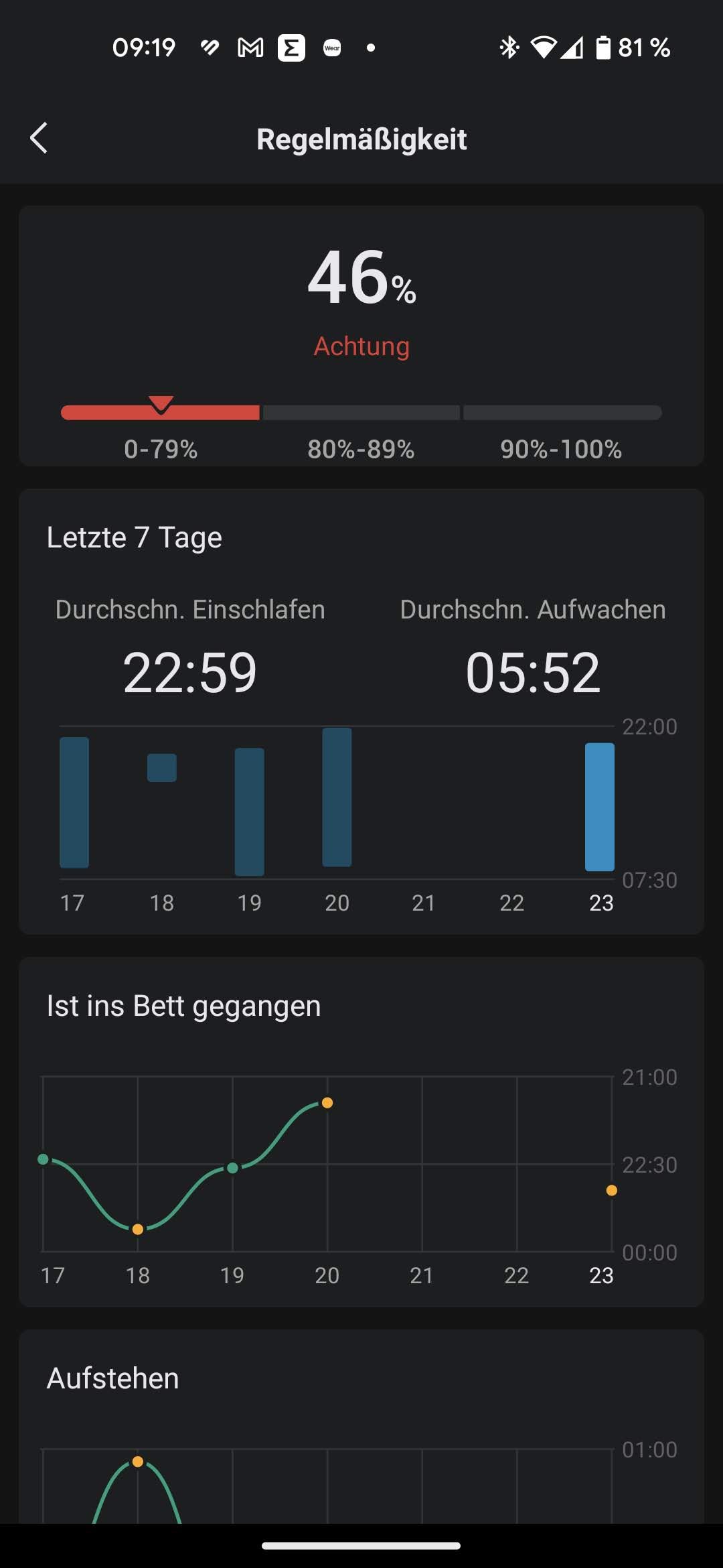 Además, el GTS 4 mide la frecuencia con la que el usuario se duerme y se despierta. El software recomienda el mayor nivel de continuidad, ya que así se garantiza una mejor recuperación. Además, el usuario puede crear su propio plan de sueño personalizado para cada día de la semana.