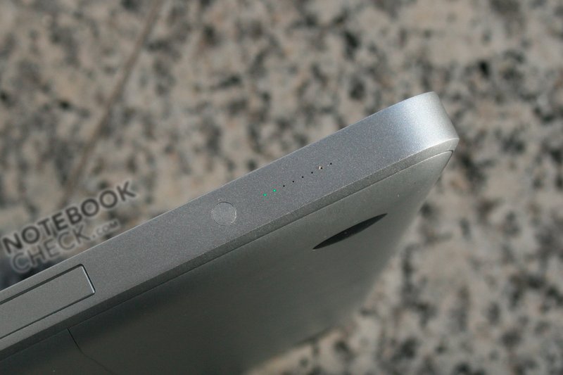 Bajo Mac OS X la duración de batería (especialmente de la batería relativamente pequeña de 50 Wh) es muy buena (si la tarjeta de video 9400M está activada). Casi 7 horas sin carga son excelentes. La Eee PC 901 con 49 Wh alcanzó la misma duración, pero su rendimiento es claramente peor. Bajo Vista el ejemplar de prueba sólo alcanzó una duración de batería de 3 h sin carga.