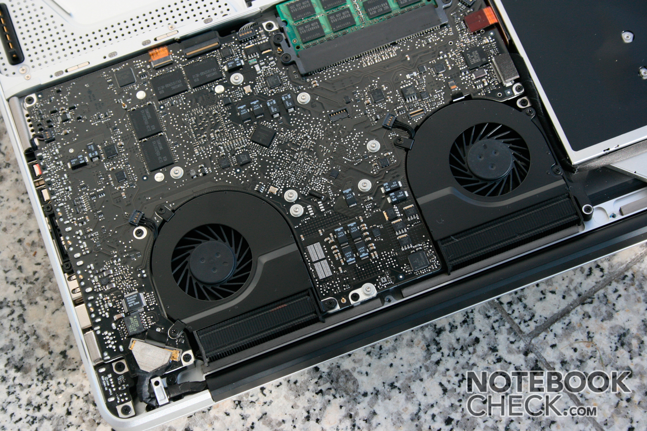 Bajo Mac OS X los ventiladores funcionan (aún con periodos de carga de trabajo total como Xbench) casi permanentemente con cerca de 2800 rpm bajo carga de trabajo habitual. Esto está acompañado por un ruido silencioso, que sólo es audible en ambientes absolutamente silenciosos (medido 31.5 cm en una distancia de 10 cm). Aún cuando funciona en modo de rendimiento con la 9600M GT activa, los ventiladores no son realmente ruidosos (con carga de trabajo habitual hasta baja).