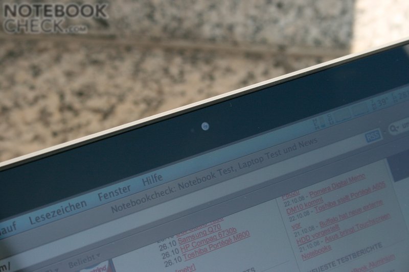 La desventaja más grande de la nueva MacBook Pro 5.1 es que una pantalla matte ya no ES una opción. Debido al vidrio, Apple sólo ofrece pantallas con superficies brillosas. De acuerdo con el gerente de marketing de Apple, esta superficie está revestida, pero, esto no fue perceptible en la prueba. Aunque los reflejos sean bastante difusos, sus colores no cambian (para poder nivelarlos). Algunas pantallas Sony dual lamp y la MacBook Air combaten los reflejos de esta manera (reflejos azulados).
