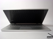 La calidad de percepción, que es de primera clase en términos de apariencia y sensación, no solo vive a las expectaciones del diseño, pero también a las propiedades funcionales del chasis. Partes sólidas con una excepcionalmente alta tensión de dureza torsional solo pueden ser dobladas y marcadas minimamente. Crujidos, vibraciones, o chirridos? Absolutamente ninguno. El chasis, completamente redondo y solo separado a través de las bisagras de la pantalla, forma una unidad perfecta. Desmontes, cubiertas y aperturas son fabricadas precisamente y no muestran ninguna deficiencia. Esto muestra la gran ventaja de la fabricación de una pieza que entrega una base sólida del marco. Pero las pocas partes movibles, tales como las bisagras de la pantalla no develan ningún defecto. Este trabaja ejemplarmente y obtiene un estimulo de diseño adicional a través de los seis tornillos de torsión en los finales de la cabeza. En total, la calidad del chasis son por tanto descritas como de una clase muy alta, ellas viven al posicionamiento del producto.