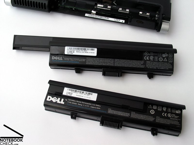 El notebook Dell XPS M1330 está disponible con tres baterías de diferentes capacidades. Además de las baterías de 4 y 6 celdas, las cuales se adaptan enteramente adentro del notebook, también una claramente más grande batería de 9-celdas, la cual claramente sobresale del chasis y también incrementa el peso por alrededor de 170g comparada con la versión de 6 celdas, es disponible. Para movilidad deberías definitivamente al menos escoger la versión de 6 celdas 56Wh. El tiempo de duración fue también medido con una batería de este tipo.