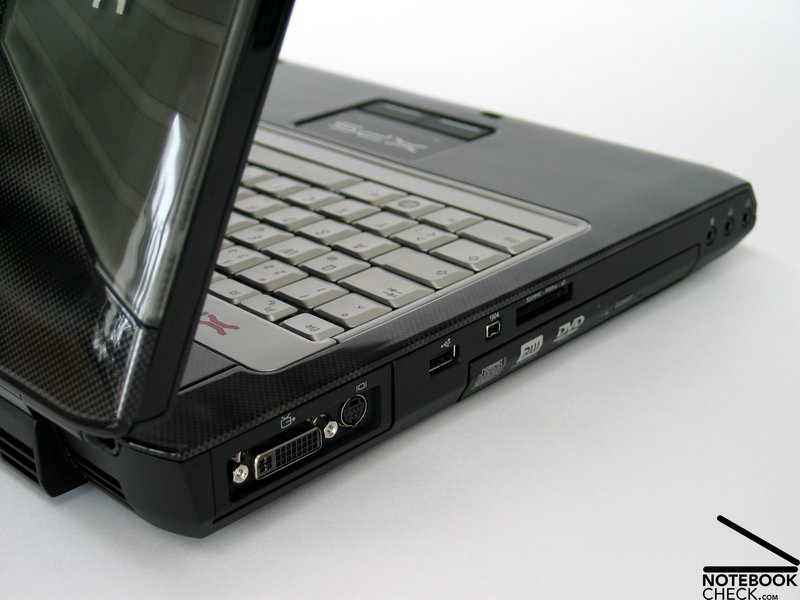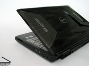 También la forma es bastante buena. El chasis compacto tiene una unidad base con suaves curvas y un llamativo diseño de cubierta de pantalla, que recuerda a la conocida estructura alienígena. Como ya mencionado el XPS M1730 tiene una superficie muy brillante, lo cual es propenso a las huellas dactilares pero es también fácil de limpiar. Una limpieza con el trapo provisto y el notebook brilla como en el primer día. Pero es muy recomendable el cuidar bien a esta bella consola, debido a que los arañazos pueden ocurrir tan rápido con las ya mencionadas huellas dactilares.