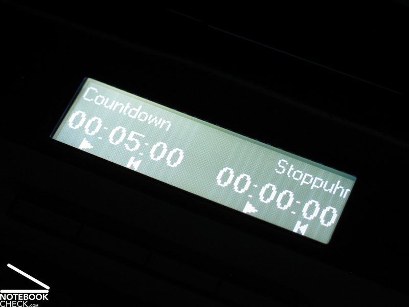 Como tu puedes ver en el video sobre el ángulo de visión el punto débil de la pantalla es su superficie reflectante. Incluso con un brillo moderado de los alrededores y una pantalla bastante oscura reflexiones disruptivas en cuartos cerrados ocurren. Por esto es recomendado el chequear la posición del notebook con respecto al origen de la luz. El uso al aire libre es malo debido a la fuerte superficie reflectante.