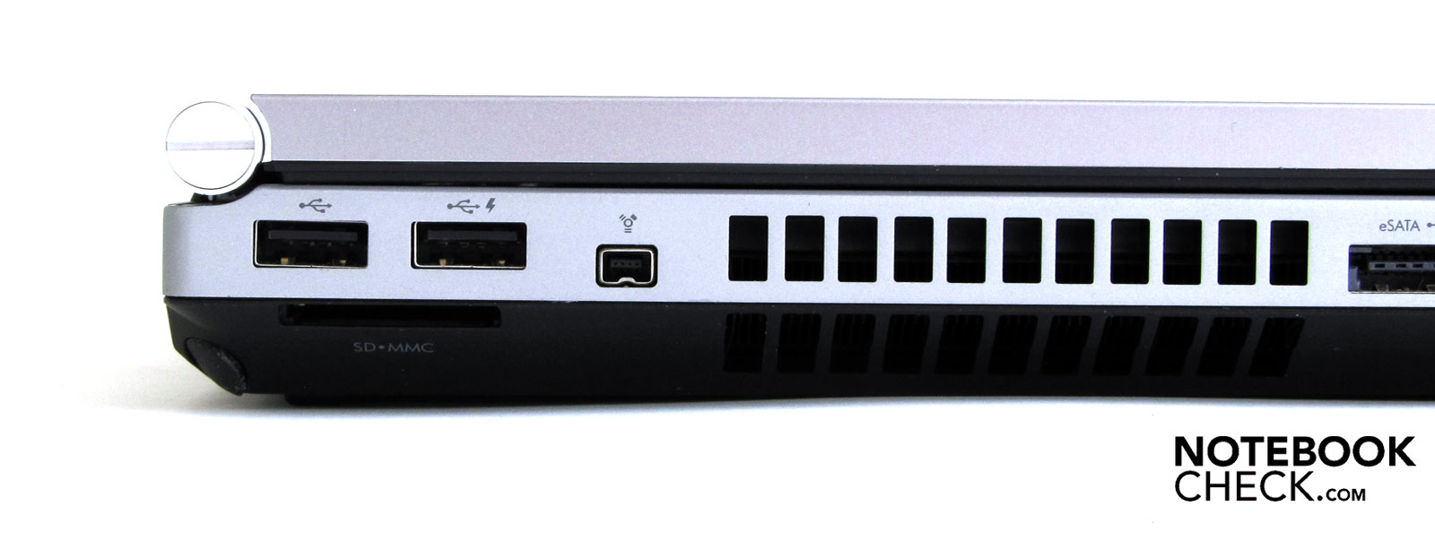 También en el lado izquierdo está el lector de tarjetas SD y MMC. Por último, hay una ranura de expansión PC Card Express/54, también en el lado izquierdo. A pesar de tener tantos puertos, los lados del notebook no parecen estar abarrotados.