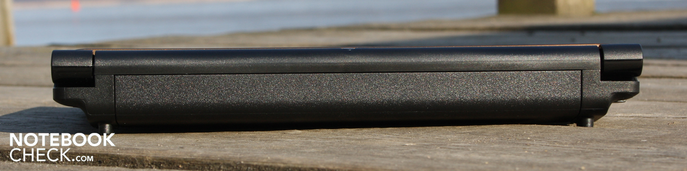 Su peso de 1.28 kilogramos incluyendo la batería de seis celdas está dentro de lo razonable para un netbook con display de 10". Hay una tapa de servicio por debajo para cambiar la memoria o el ddisco duro. El módulo WLAN también puede sustituirse. Se puede bajo el panel ver una sección desocupada para una tarjeta mini PCI de medio tamaño, pero no puede ocuparse con un componente. Le faltan las soldaduras. Creemos que el netbook viene equipado con este espacio vacío porque está pensado potencialmente para una versión UMTS (ranura de tarjeta SD bajo la batería).