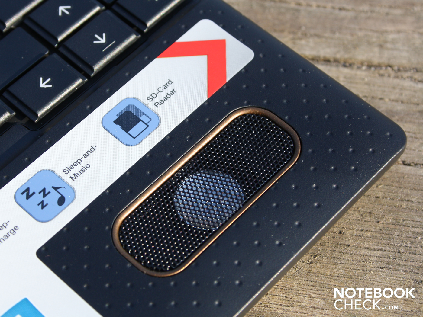 El fabricante habla de Sistema de Sonido de Bajos Realzados con Dolby Advanced Audio e integró un par de altavoces Harman/Kardon directamente en el reposa palmas. Las preocupaciones de que las manos tendrían un efecto negativo en el sonido se confirman en cuanto se cubren completamente de forma intencional los altavoces. Los altavoces ofrecen un rendimiento de 2 vatios cada uno, lo que, en contraste con modelos típicos de 0.5 vatios (o incluso menos), asegura un volumen notable en un cuerpo de sonido claro.