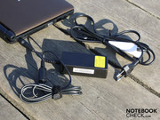 El modelo hermano NB550D muestra unos valores de consumo en inactivo muy similares: 5.4 a 6.7 vatios (inactivo min-max.). El diminuto cargador está estandarizado para los 30 vatios. Esto es suficiente para el máximo uso de energía de 31.3 vatios incluyendo la carga de la batería.