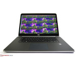 La apariencia externa del dispositivo se beneficia de los materiales de primera que se usan así como de la extremada delgadez. A primera vista, parece poco probable que los potentes componentes de la estación de trabajo hayan cabido en este chasis de estilo ultrabook de menos de 20mm de altura (incluyendo las patas de goma) y un peso de no más de 2 kg. Se ha usado metal, vidrio, plástico y una superficie engomada alrededor del teclado, y funcionan bien juntos. Los pequeños huecos homogéneos son una alegría para la vista. El portátil no cruje (ni emite ruidos desagradables). Ni el reposamanos ni el lecho del teclado se bambolean, y lo mismo cabe decirse de las visagras y la tapa del display (que resiste la torsión). Por desgracia, el máximo ángulo de apertura del display es demasiado limitado, lo que puede ser un problema en algunos escenarios de uso. Hay algo de aire cálido que sale entre las bisagras del display y el chasis, y si bien no nos convence esta elección de diseño, tampoco le pudimos encontrar problemas, ni durante los contínuos tests de estrés.