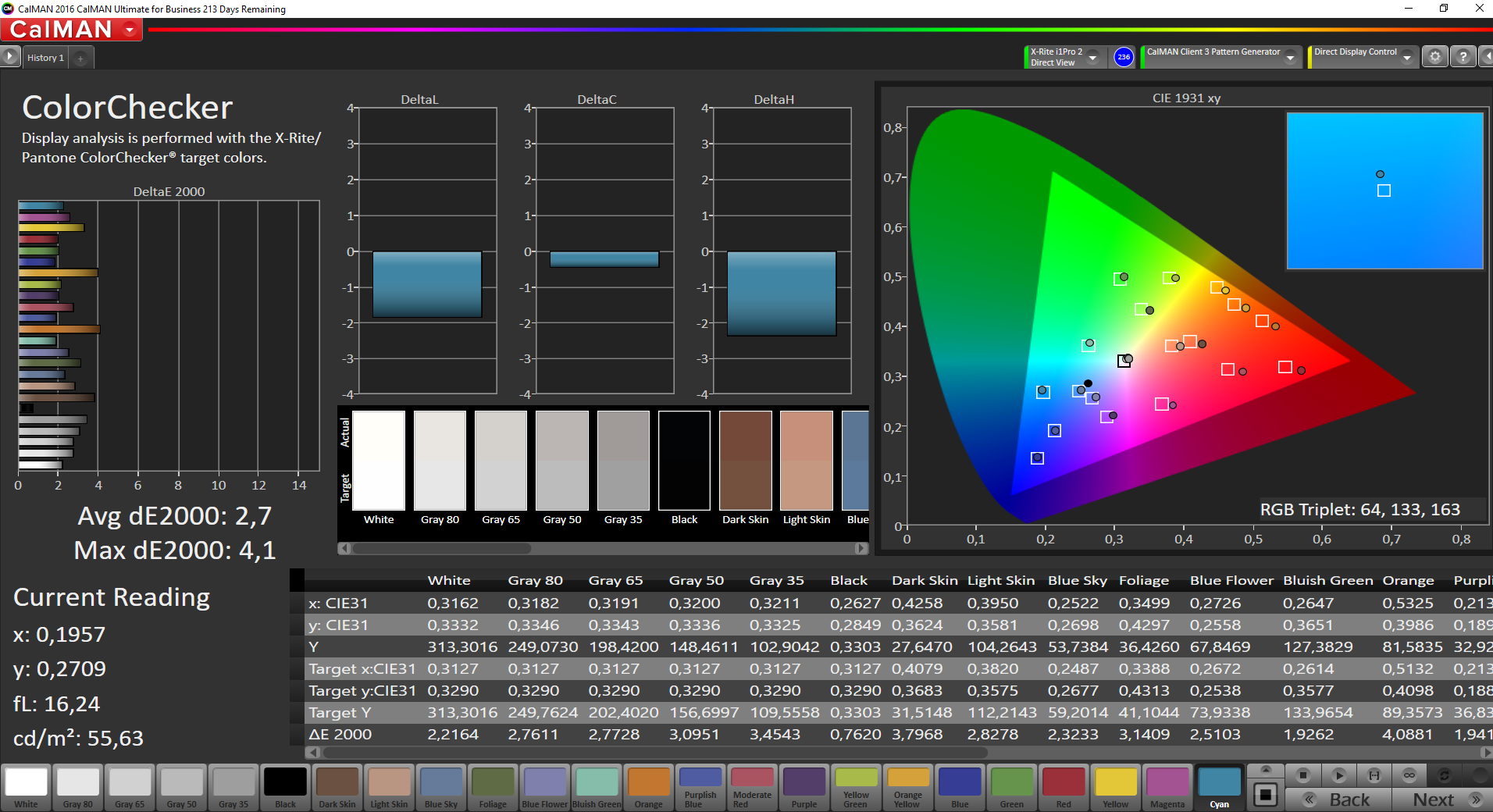 ΔE ColorChecker Calman: 2.7 | ∀{0.5-29.43 Ø4.78}