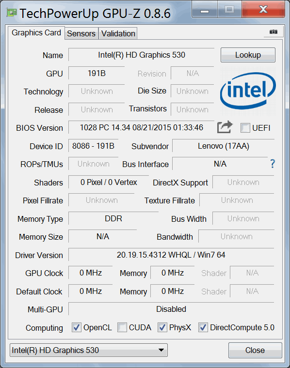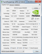 La carga de la GPU dedicada no da problemas al sistema. La Quadro M3000M puede usar su frecuencia máxima en FurMark (1050 MHz/memoria 1253 MHz) y sólo se calienta hasta los 72 °C. La ventilación es tan silenciosa en este escenario que casi no la notas, es impresionante. El rendimiento GPU se reduce ligeramente en batería. No parece tener orígenes térmicos, sino un límite de consumo impuesto por Lenovo, ya que el chip va a 900-980 MHz (memoria 800 MHz) y sólo alcanza los 67 °C.