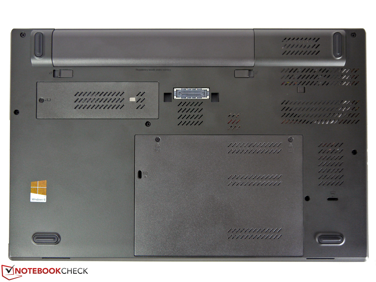 Lenovo ofrece dos baterías diferentes para el ThinkPad W540. Nuestro modelo de pruebas viene equipado con la más pequeña, de 56 Wh, que va alineada con la carcasa. La alternativa es una batería abultada, casi el doble de potente, con 99 Wh. Esta batería ya va incluída en algunos modelos preconfigurados; de lo contrario se puede añadir o comprar por separado en la tienda online (Lenovo 0C52864, unos 100 Euros).