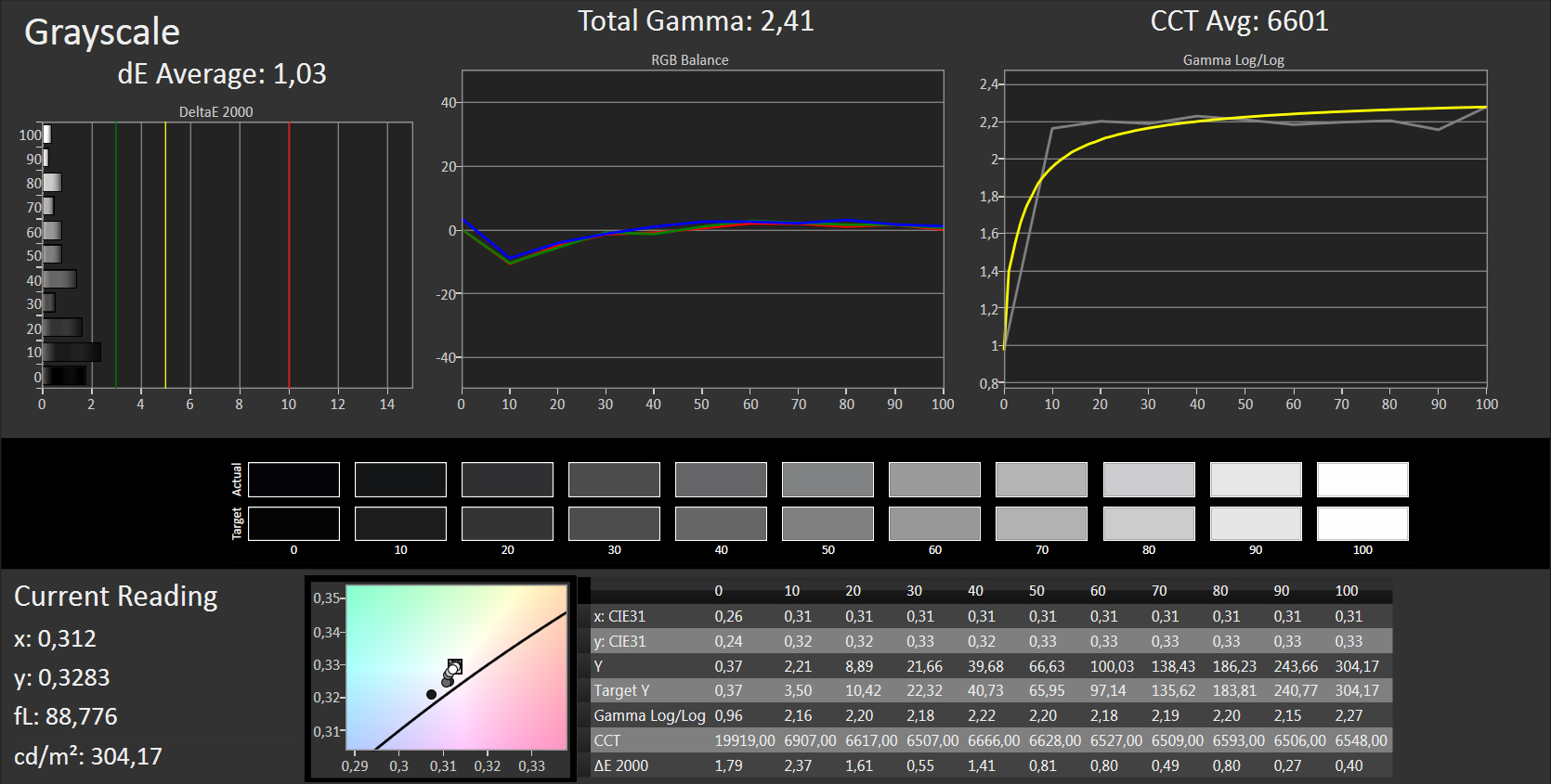 ΔE Greyscale Calman: 6.62 | ∀{0.09-98 Ø5}