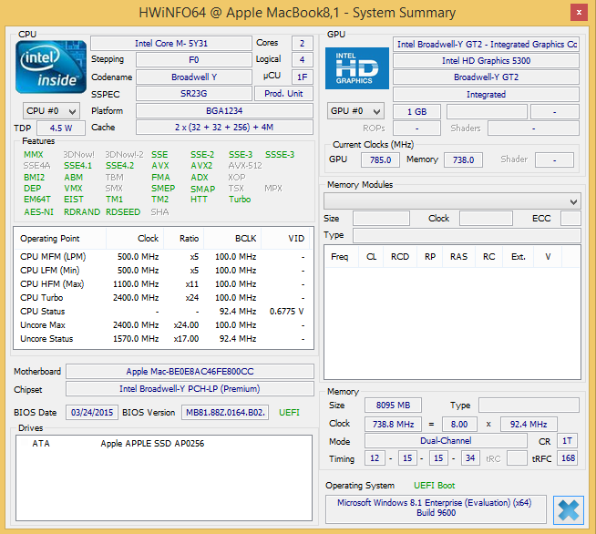 | Apple MacBook 12 (Early 2015) 1.1 GHz Apple SSD AP0256 | Apple MacBook Pro Retina 13 inch 2015-03 Apple SSD SM0128G | Apple MacBook Air 11 inch 2015-03 Apple SSD SM0128F | Asus ZenBook UX305FA-FB003H SanDisk SD7SN3Q256G1002 | Lenovo ThinkPad X1 Carbon 2015 Samsung SSD SM951 512 GB MZHPV512HDGL | |