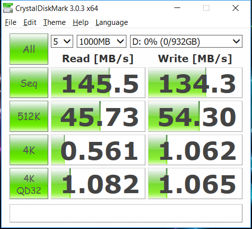 Puedes esperar tasas de transferencia de entre 60 y 90 MB/s (test de copia JPG) para portátiles modernos, y todos los dispositivos de comparación están dentro de este rango. Sólo el nuevísimo MSI GT62VR es mucho más rápido y alcanza unos impresionantes 190 MB/s cuando copia un fichero de 1 GB.