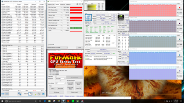 La gestión agresiva de la temperatura también tiene sus ventajas: las temperaturas superficiales generalmente permanecen por debajo de las de los sistemas de la competencia. Incluso en inactivo sin aplicaciones en ejecución las temperaturas nunca son planas y algunas áreas se calientan más que otras. Nuestro test de estrés con Prime95 y Furmark lleva la temperatura a un máximo de 42º C en la esquina inferior derecha. Muchos sistemas competidores se calientan considerablemente: el Alienware 17 R4, por ejemplo, alcanza los 56º C. El sistema sube un par de grados más la temperatura durante la prueba Witcher 3, pero el reposamanos y el área de teclas WASD - de hecho, los dos tercios inferiores del portátil - se mantienen increíblemente frescos incluso en condiciones extremas.