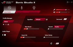 El sonido es sorprendentemente bueno para un portátil. Asus dio dos altavoces al GL702ZC, a izquierda y derecha del reposamanos y los apoya con el software de audio Sonic Studio II. Los compradores no sólo encontrarán varios perfiles (Música, Película, Gaming…) sino también un ecualizador, mejora de sonido para micrófonos, y modos especiales para los vídeo streamers.