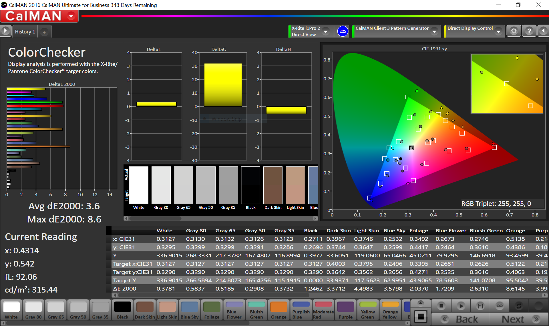 | Greyscale dE 2000 * | 3.3 | 7.26 -120% | 2.57 22% | 2.67 19% | 7.37 -123% | 3.46 -5% | 6.12 -85% |