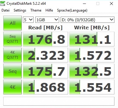 El Aero 15X muestra que se puede lograr un mejor aguante. Ha sacrificado una ranura de 2,5" por una gigantesca batería de 94 Wh. En nuestra prueba, el GM501 solo puede lograr un aguante máximo de 4 horas (el Aero 15X funciona durante hasta 13 horas), lo que no permite excursiones particularmente largas. Las pruebas más prácticas (navegar, vídeos HD) solo duran de 2.5 a 3 horas antes de que el dispositivo se apague. Si configuras el brillo al máximo y le das a la GM501 una aplicación 3D exigente, pide ayuda (o su adaptador de corriente) tras solo una hora. Jugar sin un adaptador de corriente no es una buena idea. En nuestra prueba con "The Witcher 3", el frame rate se redujo en un 65-80% con la batería.