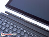 Un área en la que el Latitude 5285 se distingue de la competencia es la facilidad del mantenimiento. Los tablets son notorios por ofrecer muy poco o ningún acceso a los componentes internos - pero en el convertible de Dell, el proceso apenas tarda unos minutos. Tras sacar seis pequeños tornillos Phillips debajo del atril, la base se puede desmontar. Aunque puede que no lo parezca en principio, no es la bandeja trasera lo que sale - es el display Corning Gorilla Glass, que sencillamente se levanta con la ayuda de un trozo de plástico o incluso las uñas. Las pestañas de conexión entre ambas partes parecen muy resistentes, por lo que ni repetidos desmontajes deberían tener efectos nocivos para la longevidad. La RAM va soldada a la placa base, pero el SSD NVMe PCIe, el módulo WLAN y el ventilador quedan accesibles para limpieza y mejora.