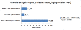 Además de una carga de sistema habitualmente muy inferior, los resultados se presentarán sensiblemente mas rápidos cuando las tareas se realicen en una unidad gráfica en lugar de en una CPU (GPGPU). Examinamos el rendimiento de la interfaz OpenCL independiente de plataforma así como del motor propietario de Nvidia, CUDA, en el Dell Precision M4800. No se puede usar Intel QuickSync Video porque la gráfica integrada Intel HD Graphics 4600 no está activa. Tuvimos en cuenta las áreas de edición de imagen y vídeo, matemática financiera, encriptación, retrazado y conversión de vídeo en los tests. Se han añadido algunas tareas a nuestro repertorio y aún no tenemos valores de comparación. Completaremos las tablas con los chips gráficos profesionales de la competencia en cuanto tengamos disponibles los resultados de otras estaciones de trabajo.