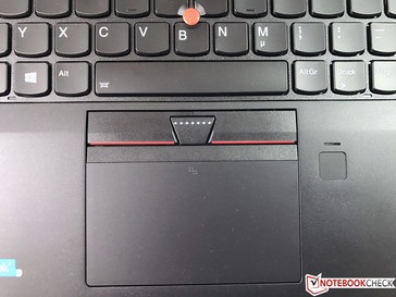 El área del touchpad incluyendo los botones TrackPoint dedicados, tampoco han cambiado. Sin embargo, el touchpad ahora es un Precision, dónde las entradas las procesa directamente Windows y no un driver de terceros. El panel driver Synaptics sólo ofrece una fracción de características de los modelos anteriores, todas las opciones importantes se pueden ajustar en Windows.