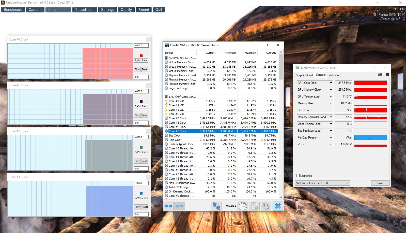 Realizamos todas las pruebas con el Turbo Mode, pero usamos el Shift Mode "Power Options" para las demás mediciones. Este ajuste usa el perfil de energía Windows y por ello reduce la posibilidad de errores de medición (especialmente en inactivo). Nuestro modelo de pruebas, pro desgracia, tuvo un problema con las frecuencias, y ya conocemos problemas parecidos de otros portátiles MSI. La CPU a menudo se quedó en 3.5 GHz en la mayoría de ajustes de Shift y Windows, lo que representa el nivel multihilo de la i7-7820HK. En el pasado, este problema solía arreglarse con una actualización para el Dragon Center. El ajuste de control de ventilador siempre se mantuvo en la opción por defecto "Auto".