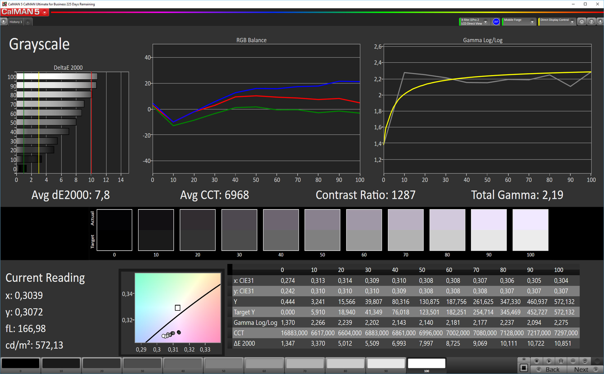 | Gamma | 2.2 100% | 2.27 97% | 2.21 100% | 2.07 106% | 2.06 107% | 2.46 89% | 2.61 84% |