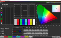 El display Super AMOLED brilla con colores intensos y contraste nítido. Esto también concuerda con nuestra impresión del Galaxy J7 (2017). No obstante, hemos examinado el panel más de cerca con el fotoespectrómetro y el software de análisis CalMAN. Medimos los perfiles de color elegidos manualmente. Cada perfil está optimizado para un espacio de color diferente. Ninguno de los espacios de color queda completamente cubierto. El balance de blancos es ejemplar en todos los perfiles. Aparte de algunas excepciones, casi todas las desviaciones de color permanecen por debajo del DeltaE de 3. Por tanto, son invisibles a simple vista.