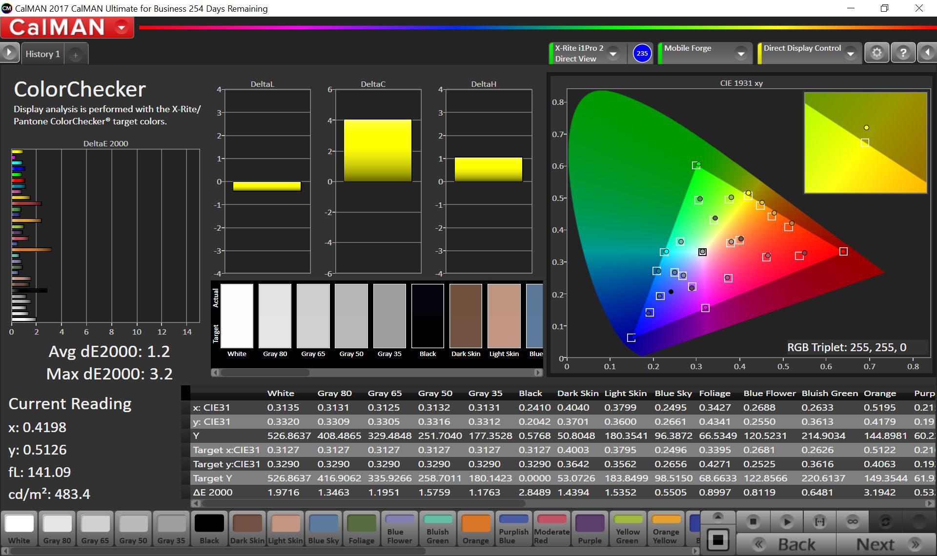ΔE ColorChecker Calman: 1.2 | ∀{0.5-29.43 Ø4.78}
