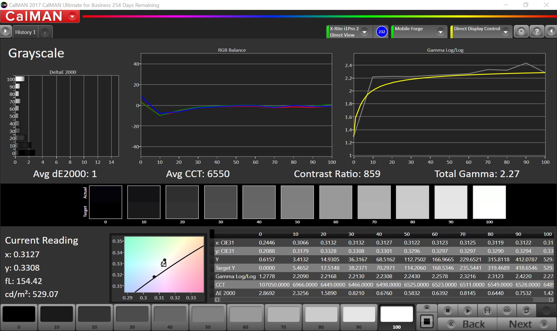 ΔE Greyscale Calman: 1 | ∀{0.09-98 Ø5}