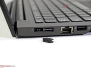 El ultrabook ThinkPad S440 de Lenovo está equipado con con una serie de interfaces situados de forma muy práctica. 2x USB 3.0, Gigabit LAN y un lector de tarjetas componen una base atractiva. Al contrario que los típicos portatiles de negocios, la conexión a pantallas externas no se realiza a traves de DisplayPort si no HDMI. No hay dispobinible puerto VGA analógico. En uso estático, la interfaz OneLink de Lenovo sustituye al docking port que normalmente se encontraba en la parte inferior de los ThinkPads. Una docking station adecuada (por ejemplo la Lenovo 4X10A06083 OneLink) puede conectarse a traves del conector OneLink que tambien incluye el conector de corriente.