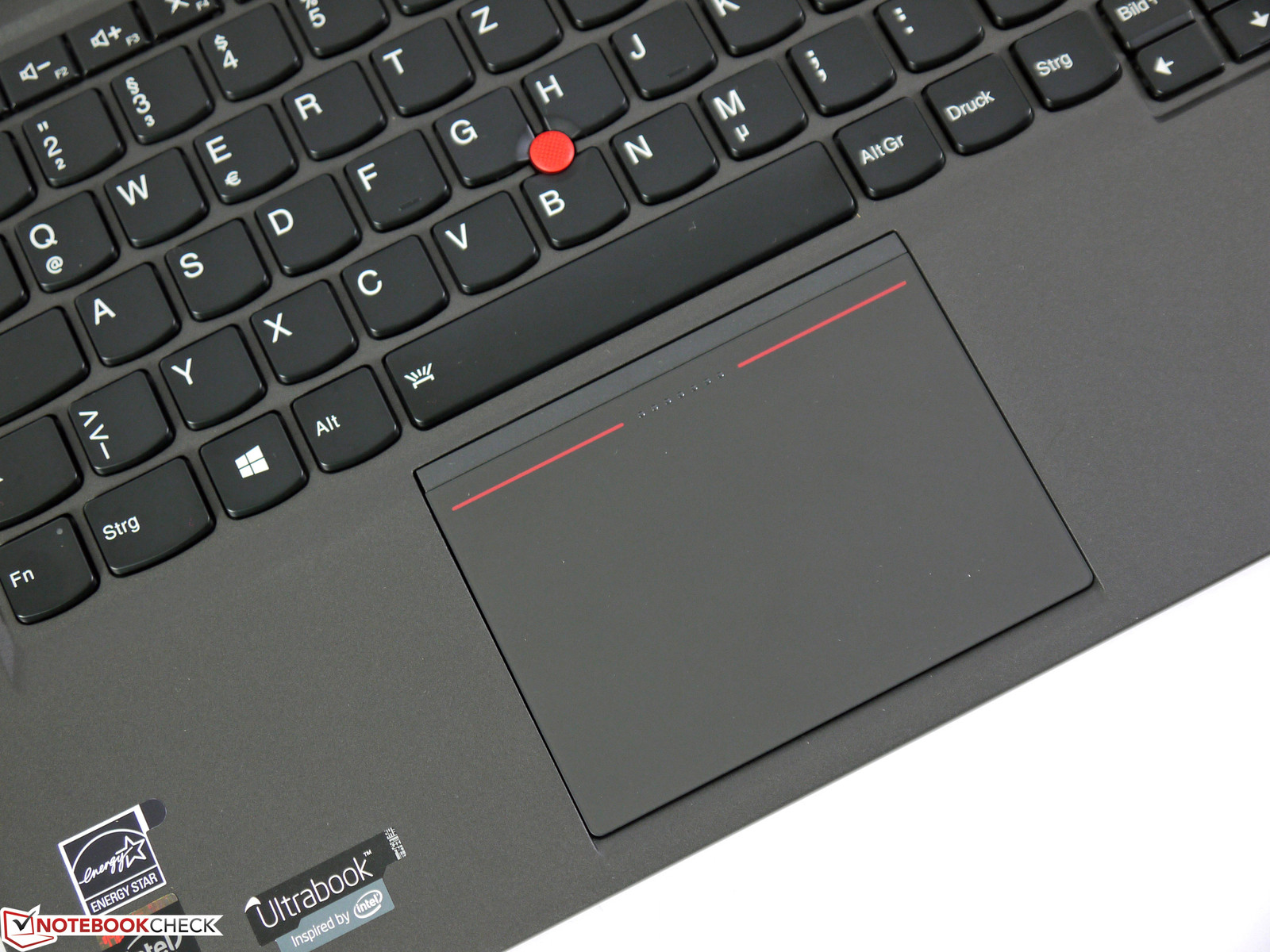 El touchpad está equipado con una superficie acristalada de 100 x 75 milímetros con buenas características deslizantes. Los gestos de Windows 8 y la entrada con los dedos se detecta muy bien. El touchpad puede ser presionado y reemplaza a los botones de touchpad y trackpad, anteriormente separados. Adicionalmente, la zona derecha e izquierda se distinguen bien. Sin embargo no funciona demasiado bien en combinación con el trackpoint. Trabajar con la parte superior del clickpad requiere algo de aprendizaje y no es comparable a trabajar con los botones adicionales respecto a comodidad y fiabilidad.